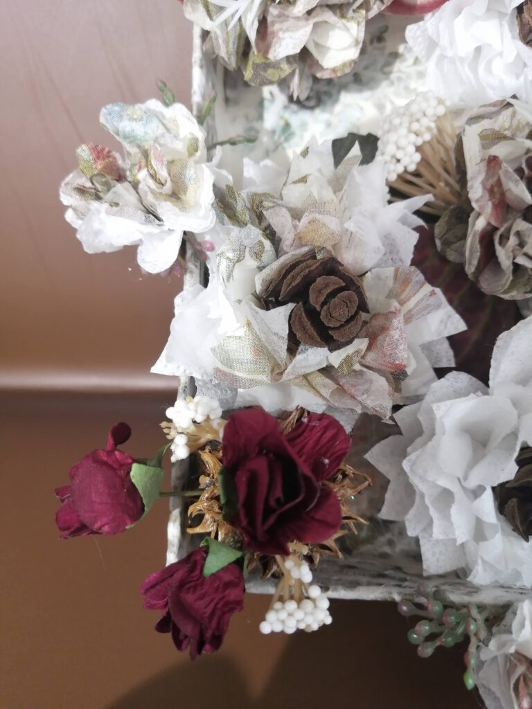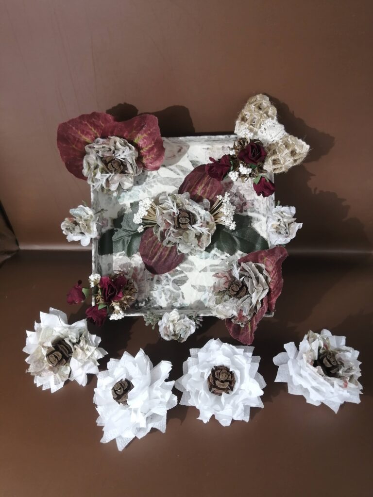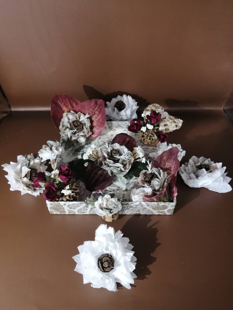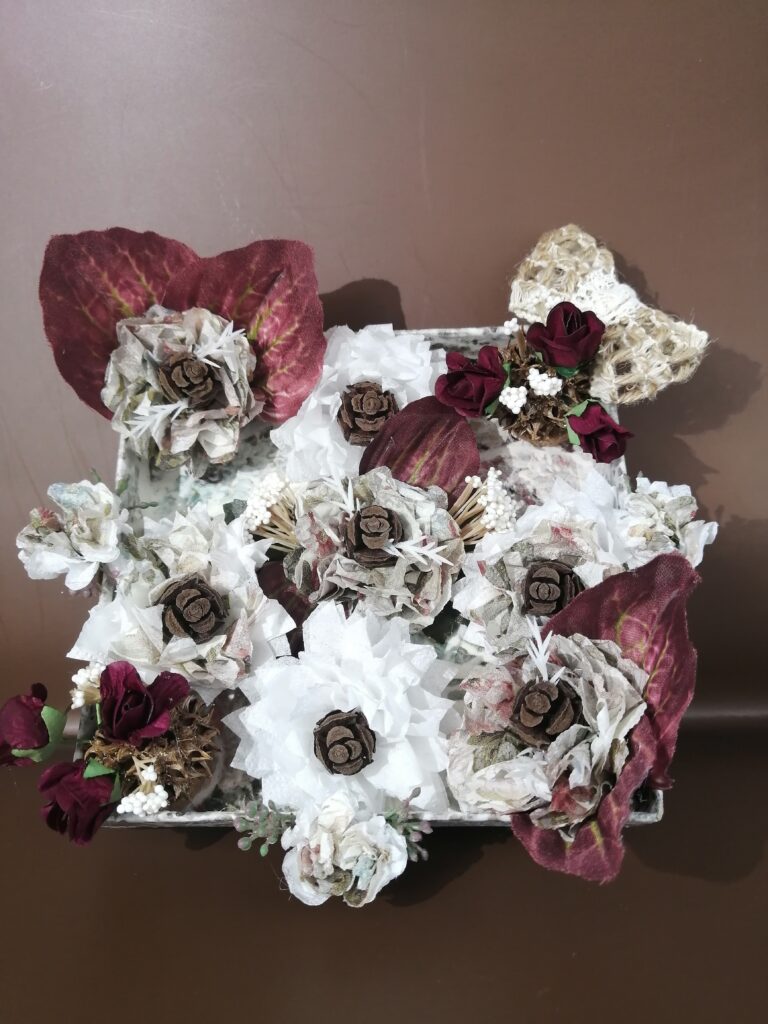 ぺパナフラワー🪷を作り木の実、造花装飾で