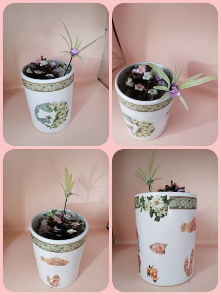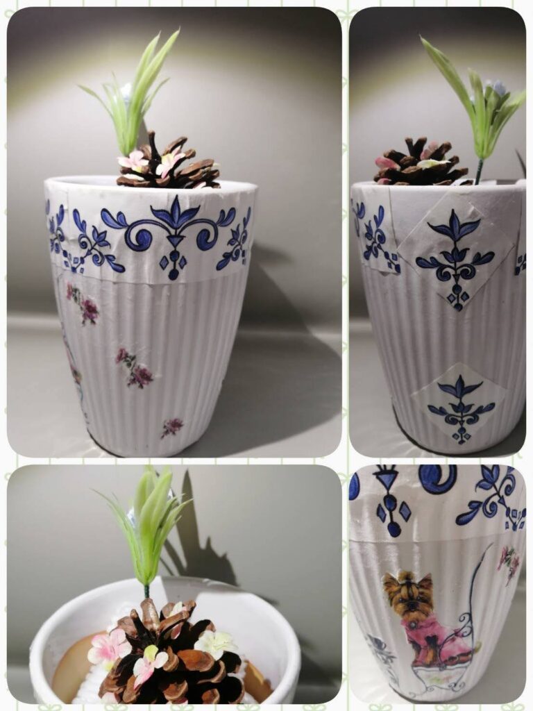 少し貼ったりと、鉢一杯にデザインを